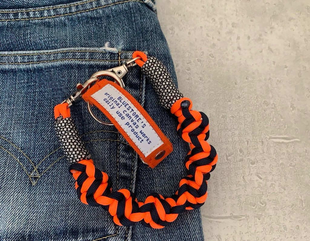 写真は帆布のキーホルダーと、店主が20代の頃に購入したリーバイスのデニム合わせてます。
